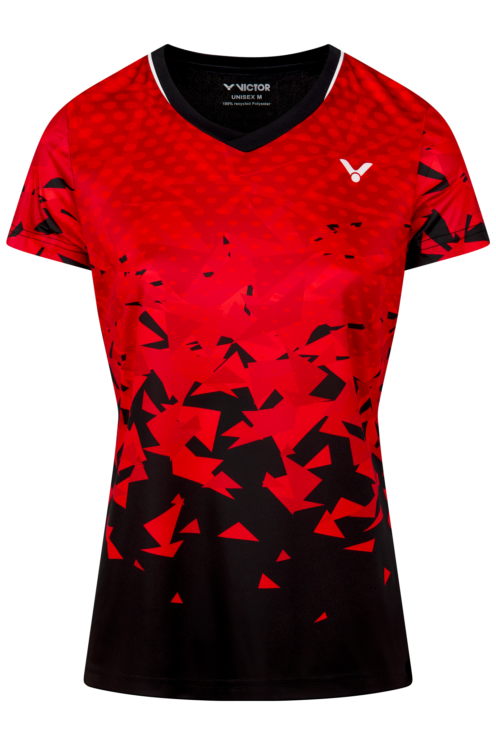 Women's lightweight, breathable and quick-wicking jerseys made from 100% recycled plastic in a beautiful red and black design. This 2025/26 team kit will be available for at least two years - a great choice for you and your team.