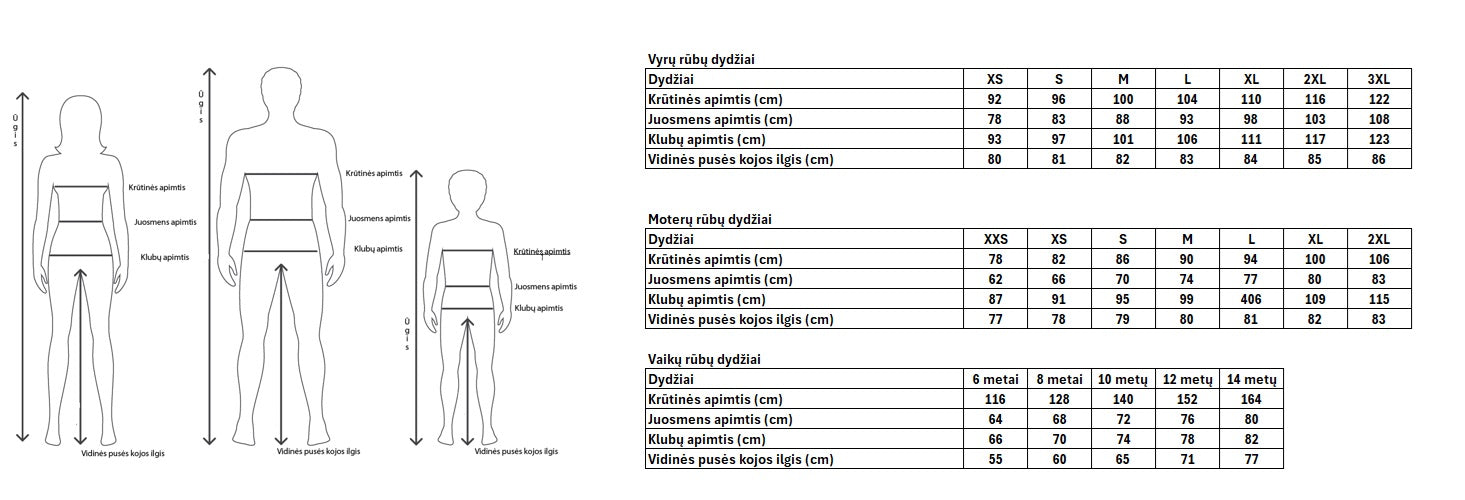 Dydžiai: XS-3XL