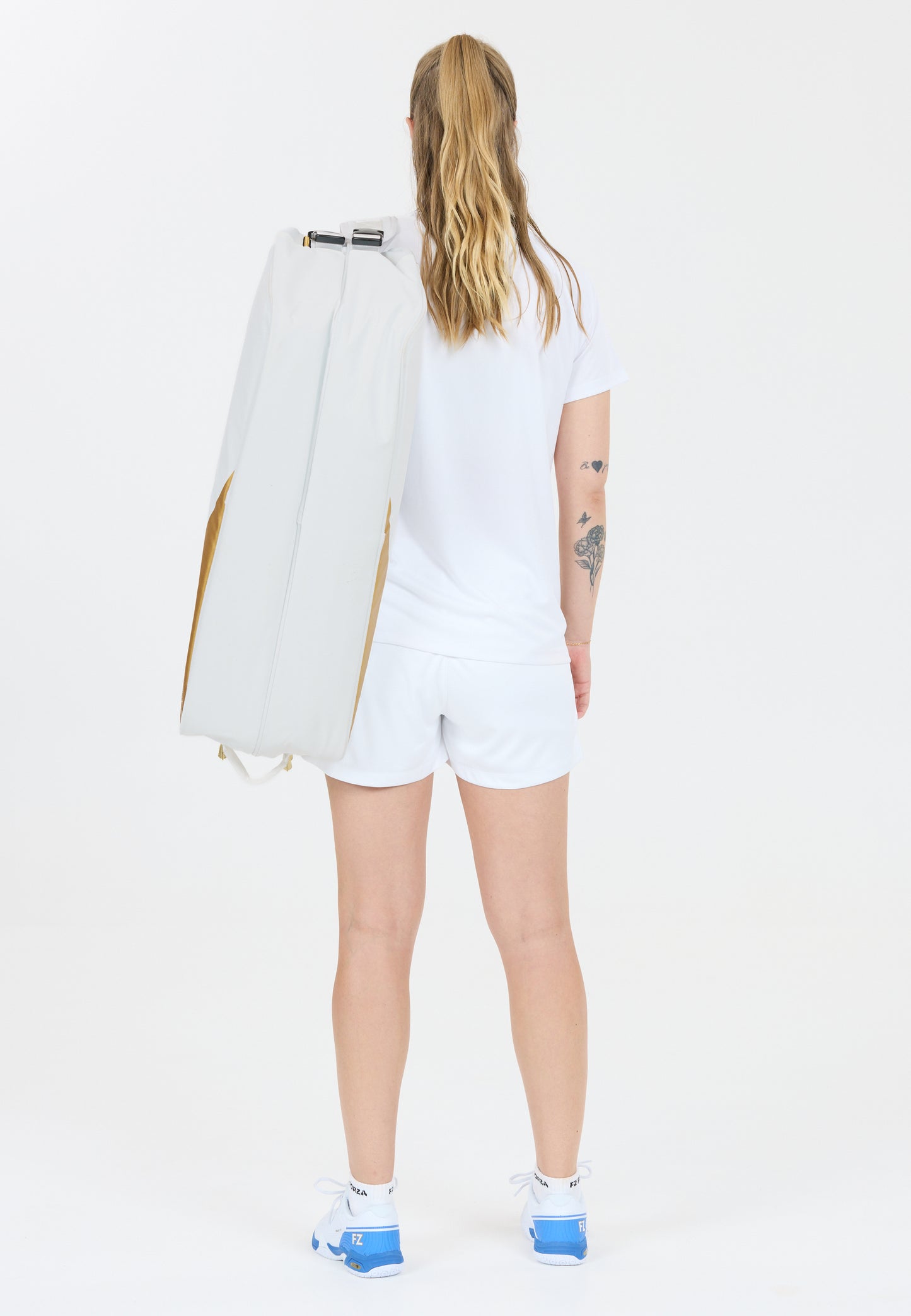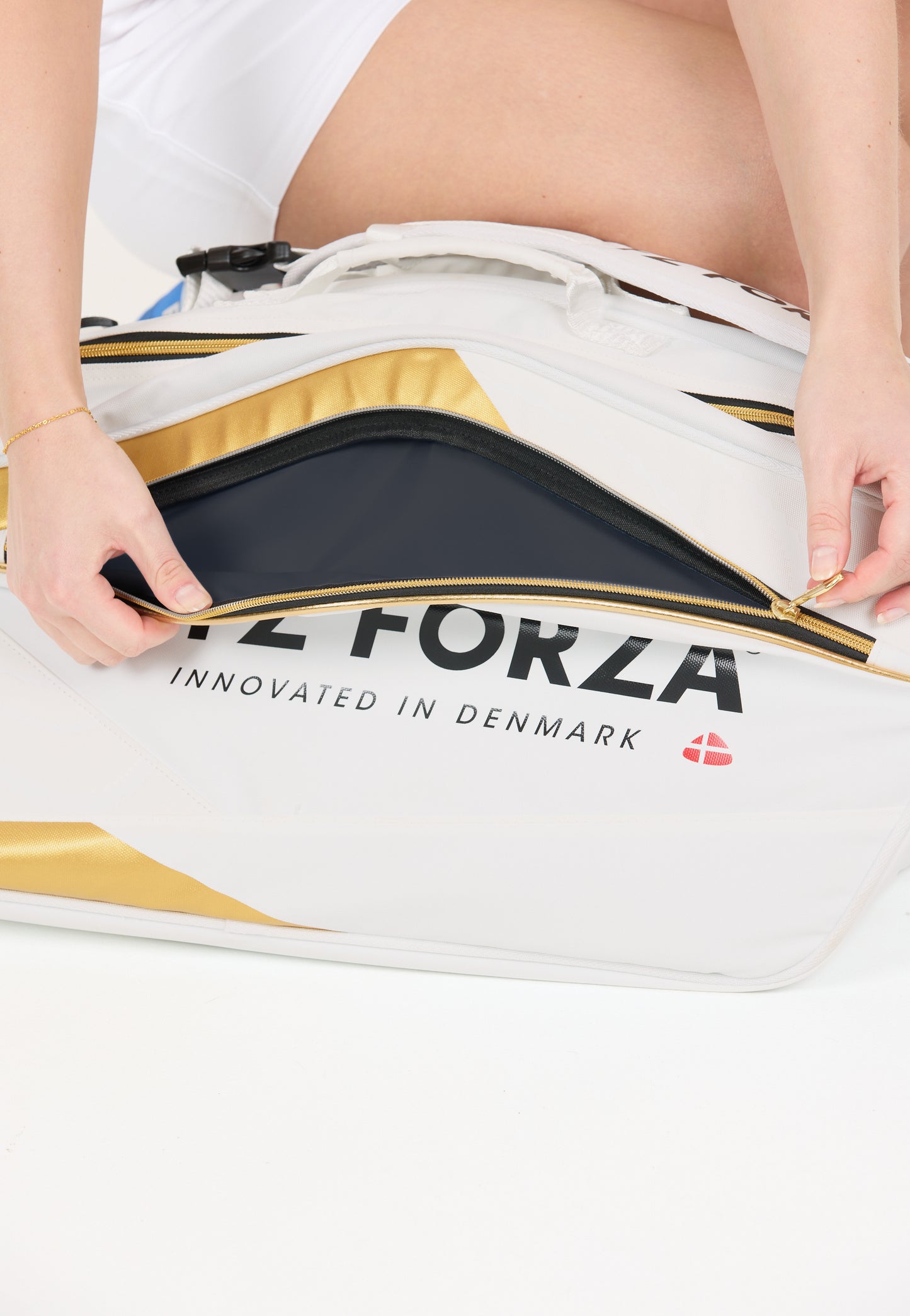 Tour Line 6 vnt. baltos spalvos badmintono kruprinė, kurioje telpa 6 raketės. Joje yra du skyriai, patogi kišenė, viršutinės ir apatinės rankenos, pečių dirželiai ir krūtinės dirželis, kad būtų lengva ir stilinga nešiotis.