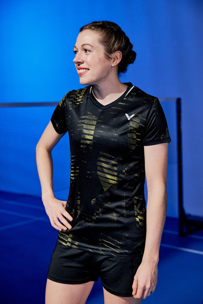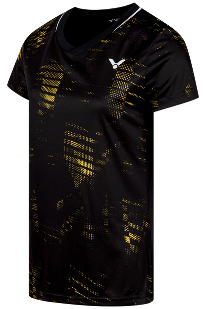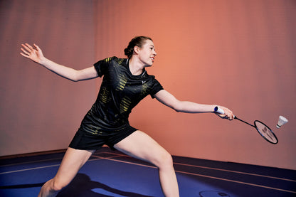 Moteriški lengvi, kvėpuojantys ir greitai išgarinantys drėgmę maškinėliai iš 100% perdirbto plastiko gražūs juodos ir auksinės spalvos dizaino. Šią 2025/26 metų komandinę aprangą bus galima įsigyti mažiausiai dvejus metus – tai puikus pasirinkimas jums ir jūsų komandai.